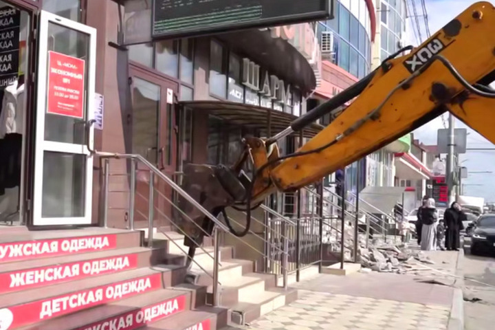 На проспекте Акушинского в Махачкале демонтировали самовольно установленных входных групп, принадлежащих коммерческим организациям. Работы проводятся в рамках возврата общественных пространств горожанам.