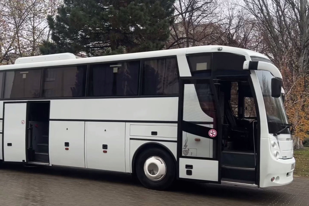 Новый автобус, рассчитанный на перевозку более 50 человек, оснащен удобными креслами, вместительным багажным отсеком и всем необходимым для комфортных поездок личного состава.